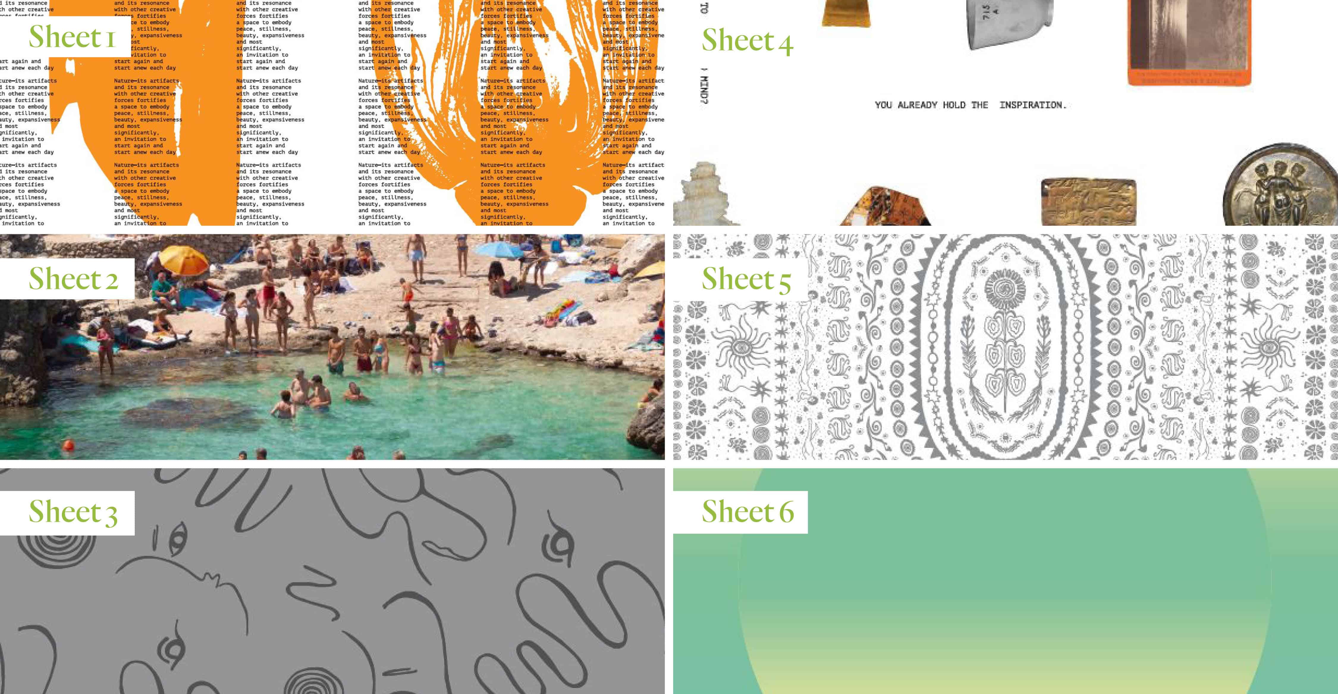 Sheet 2 – Printed on 80T Neenah Classic Linen Avalanche White. Printed with CMYK plus violet, green and orange on both sides.